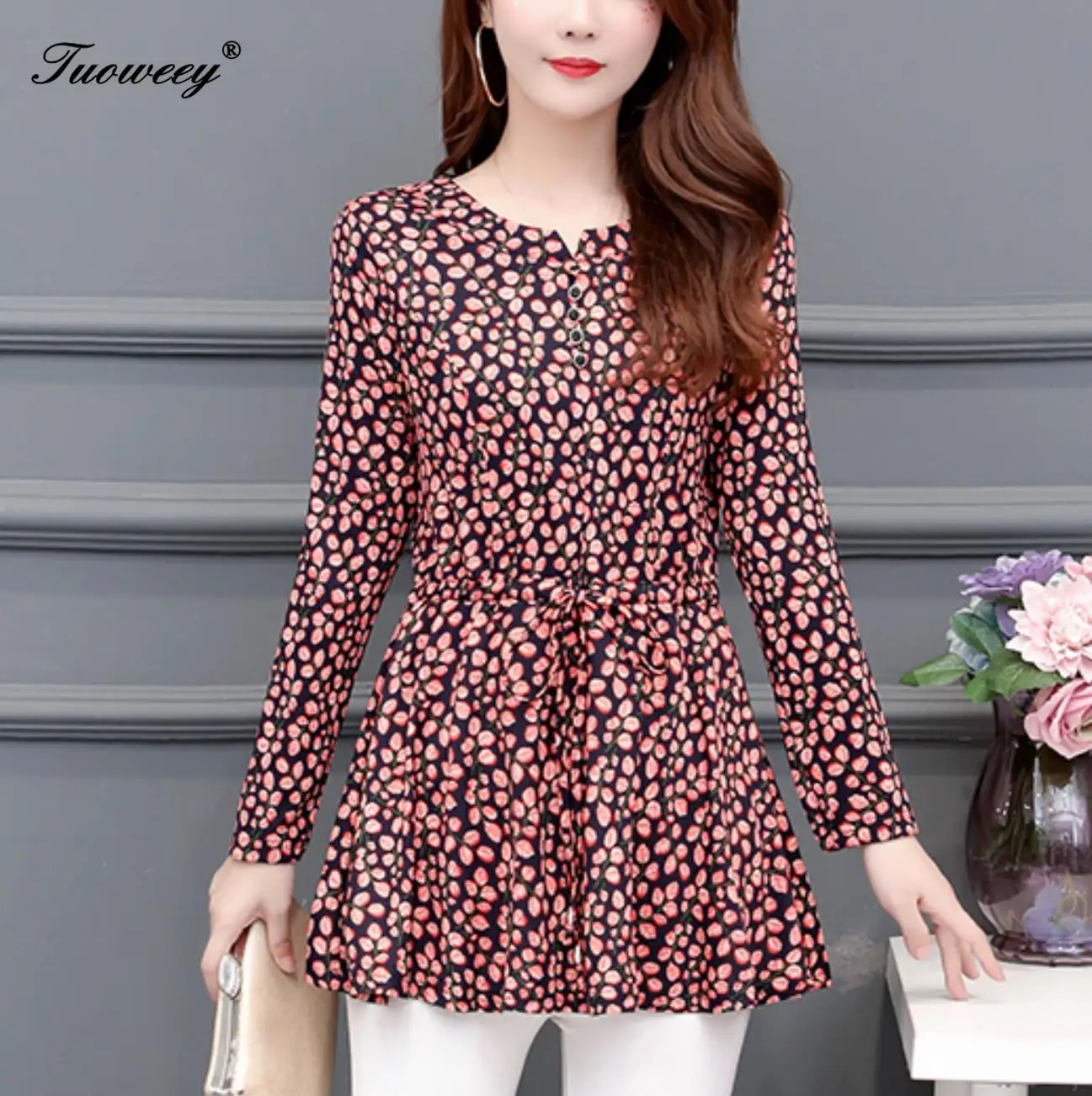 BEST QUALITY 2019 long Sleeve Women's Shirts O Neck Floral Printed Casual blusas Long Tops Flower Fitness Women